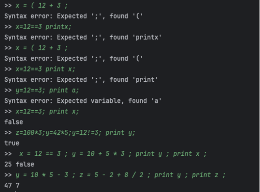 - 첫 토큰에 따라 할당문 또는 출력문을 실행합니다.