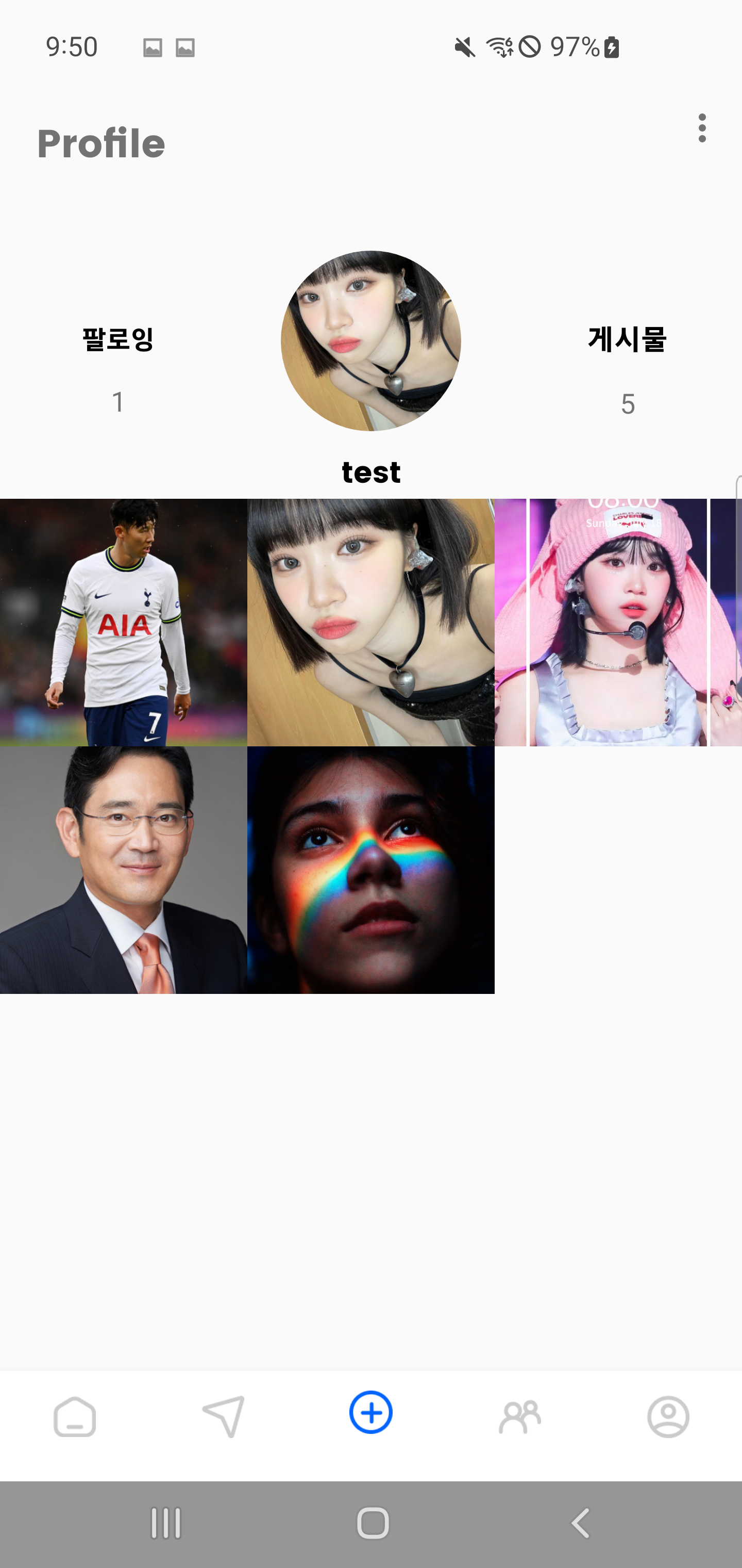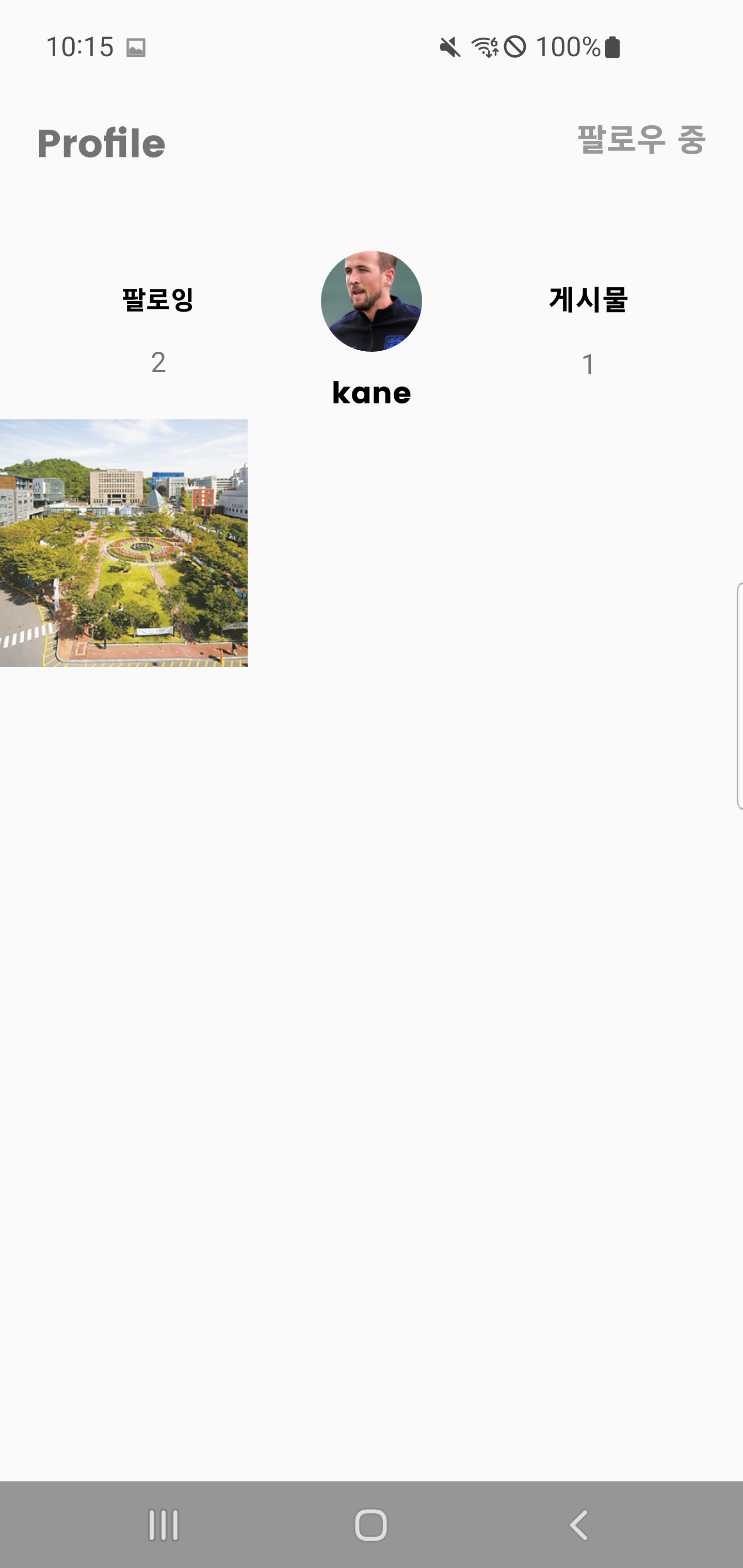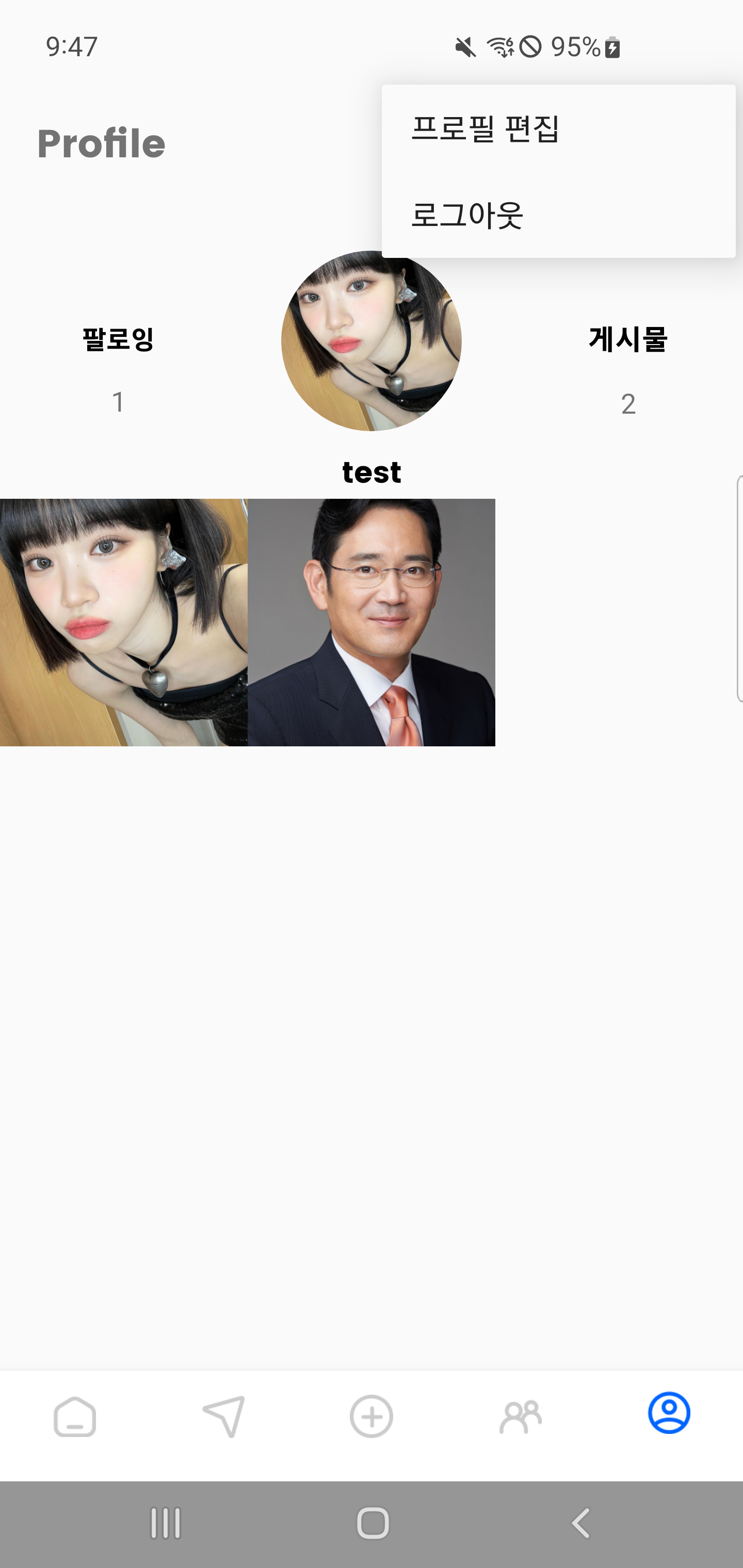 - 연결된 Firebase auth 에서 userID를 받아와 해당 user 문서에서 프로필 사진, 닉네임, following 수, post 수 등을 가져와 각 post의 대표사진을 리사이클러뷰로 띄우는 작업을 하였습니다.