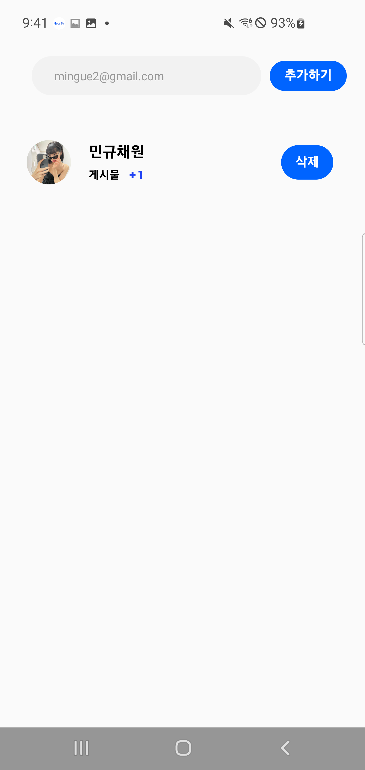 - 친구 리스트를 만들어 Firebase auth에 있는 userID에서 프로필 사진, 닉네임, 게시물 수를 가져옵니다. 이를 어댑터와 연결해 하나의 리사이클러뷰로 만들었습니다. 이때 자신의 계정에서 followings 필드에 추가된 친구 수만큼 리사이클러뷰로 띄웁니다.