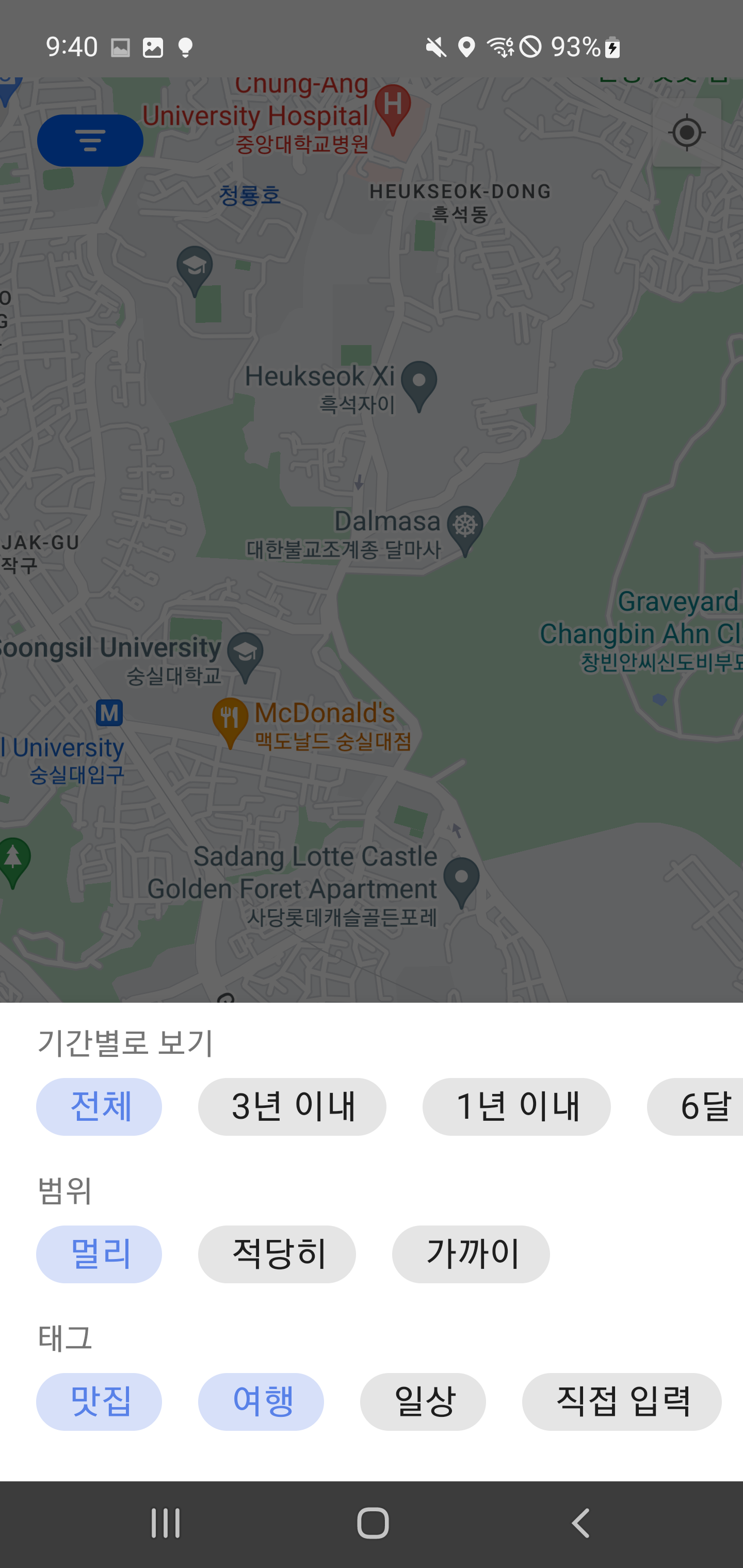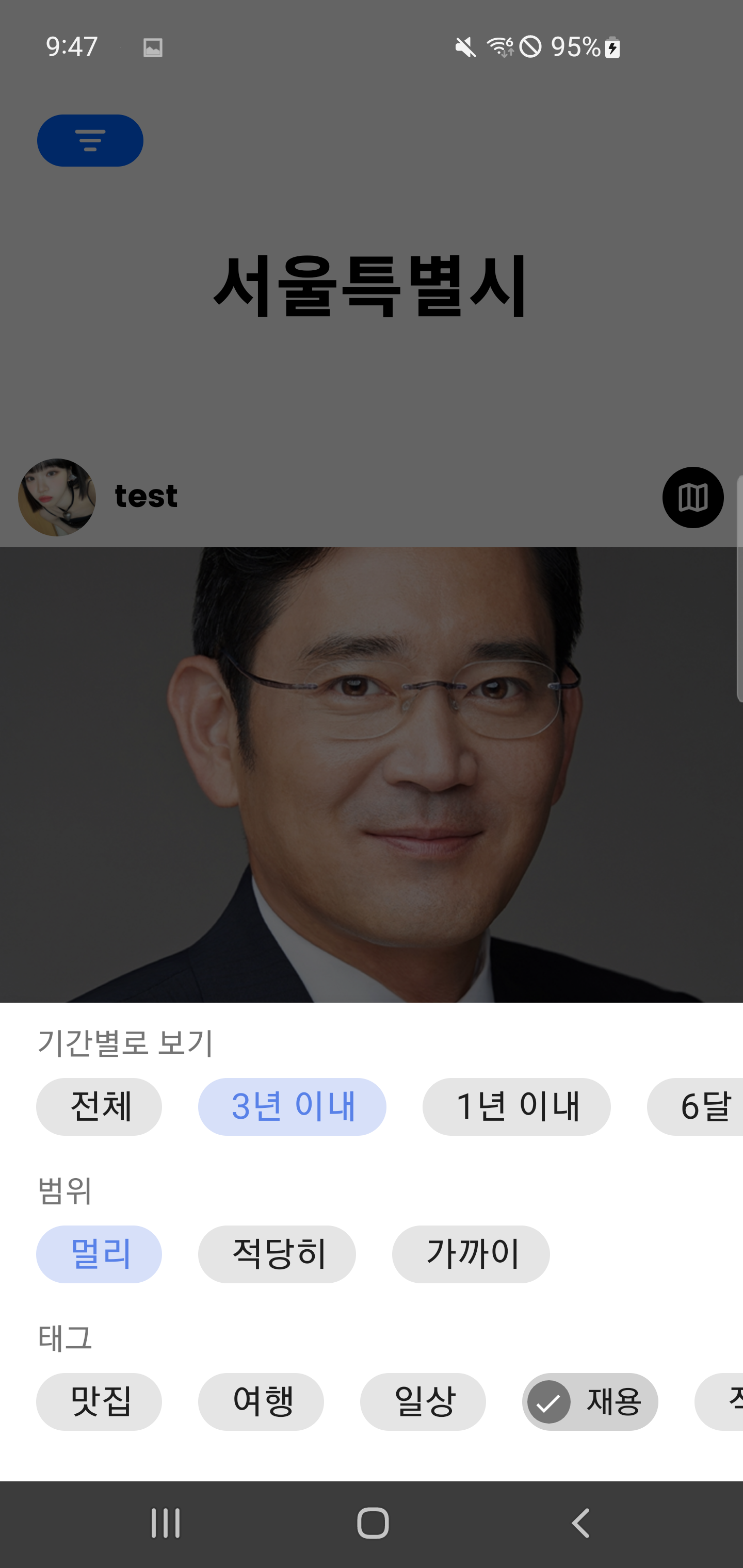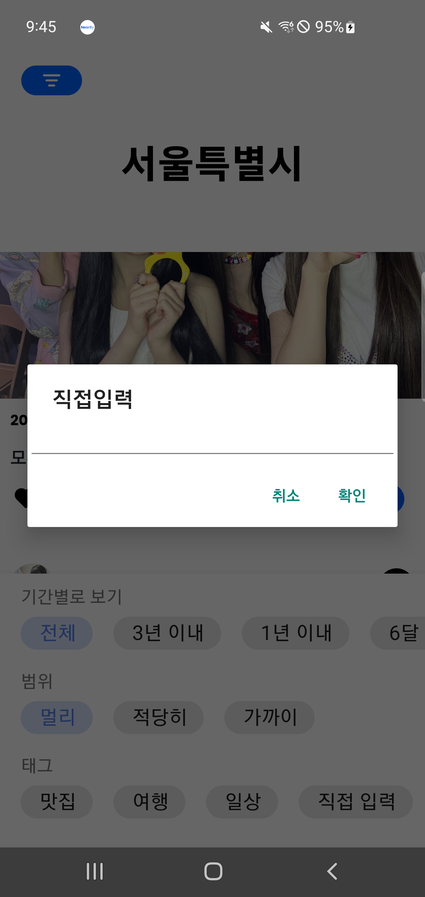 - 기간,게시글의 거리,태그 3가지 항목을 이용하여 게시물을 필터링 할 수 있습니다.